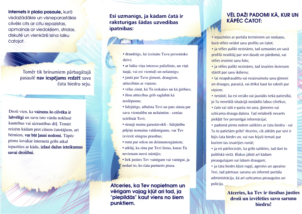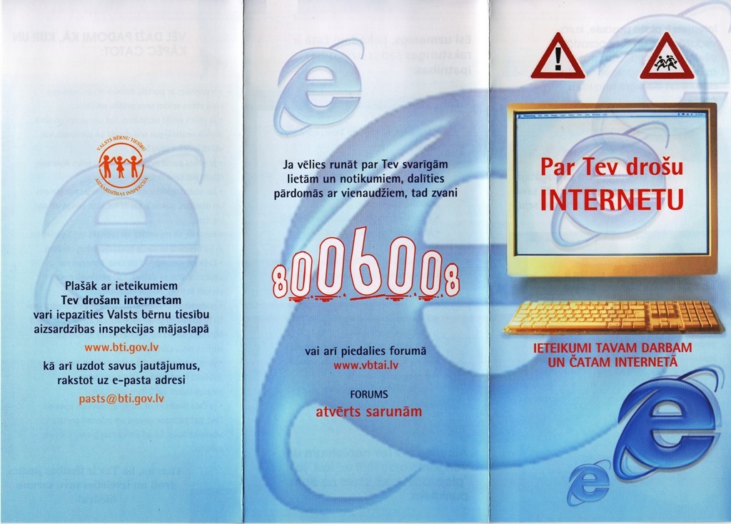 Informatīvajā materiālā „Par Tev drošu internetu” apkopoti praktiski padomi bērniem un pusaudžiem, kurus būtu ieteicams ievērot strādājot vai vienkārši pavadot laiku interneta vidē.