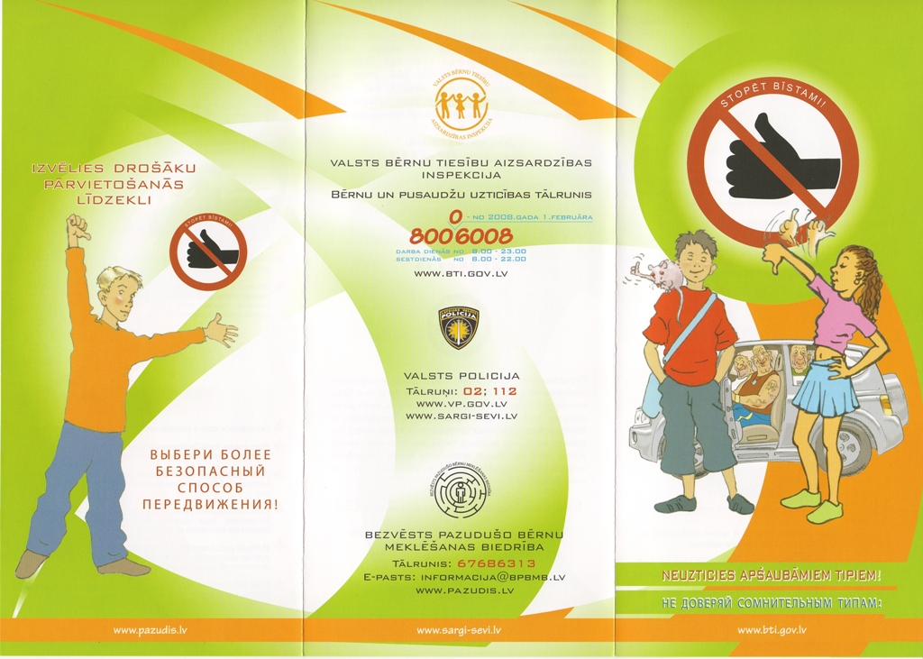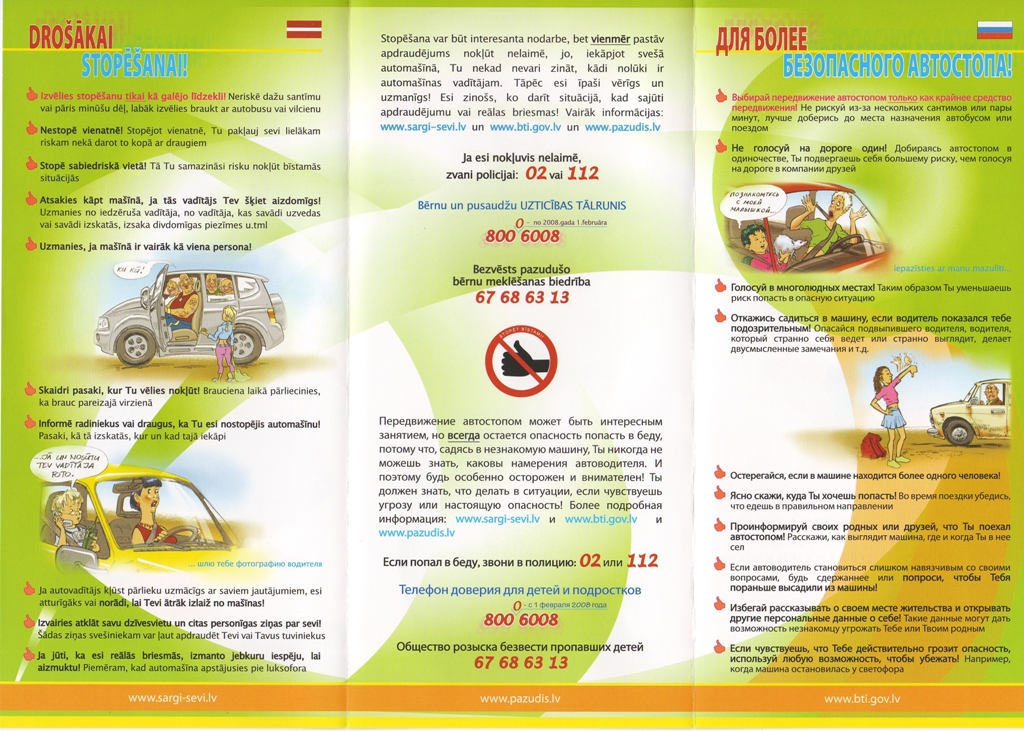 „Stopēt bīstami” ir informatīvs materiāls pusaudžiem, kas mēdz izvēlēties tādu nedrošu pārvietošanās veidu kā stopēšana.